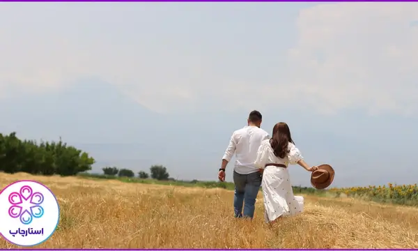 گندم زار در غروب یکی از بهترین لوکیشنهای عکسهای عروسی است. برای این که یک ایده عکاسی عروس و داماد از پشت را در چنین لوکیشن رویایی ثبت کنید، از عروس و داماد بخواهید رو به غروب بایستند. عروس میتواند دستهای خود را باز کرده یا تور خو را بالای سرش بگیرد. داماد نیز با لبخند به او نگاه کند. سعی کنید زمانی این عکس را بگیرید که نسیم گندمها را تکان دهد.