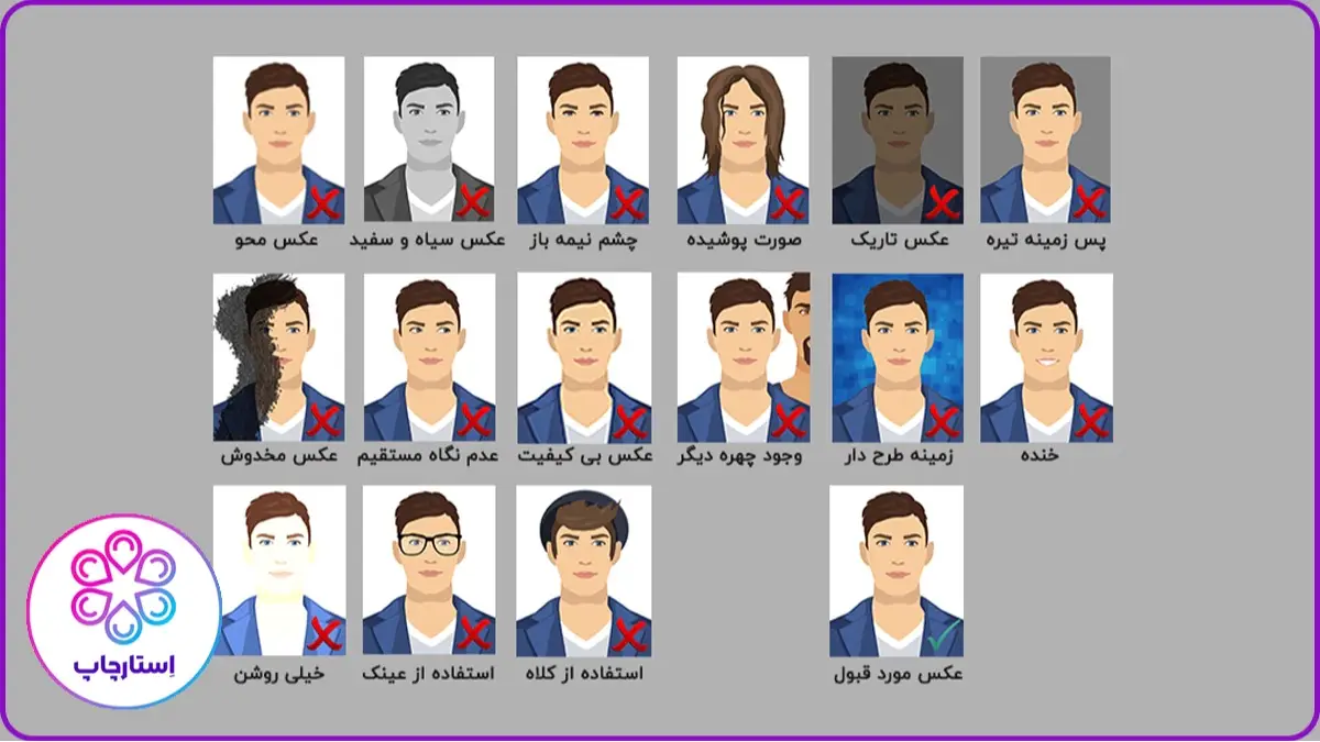 عکس پرسنلی چیست؟ عکس پرسنلی یک عکس ساده است که برای شناسایی در مدارک رسمی مثل شناسنامه، کارت ملی، پاسپورت، ویزا و موارد مشابه استفاده میشود. این عکس هیچ چیز اضافهای ندارد و چهره شما باید واضح و تمام رخ باشد.